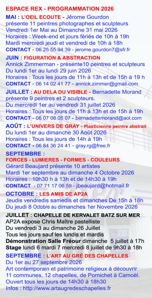 et la 21e édition de l’exposition de l’art au gré des Chapelles, du 1er au 27 septembre 2026.